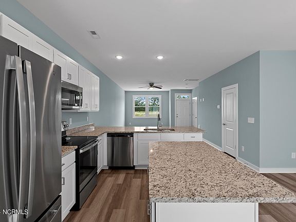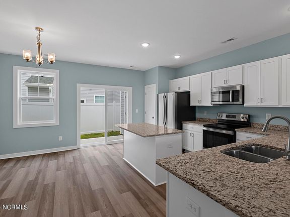 Welcome to coastal luxury living at its finest! Nestled in the NEW sought-after Beachside Commons of Snead Ferry, this meticulously maintained two-story townhome exudes charm and elegance. Step inside to discover two large bedrooms, two full baths, and one half bath, offering ample space for relaxation and entertainment. The home is equipped with luxurious LVP flooring, recessed lighting, and 9' ceilings. The well-appointed kitchen showcases sleek solid surface countertops, stainless steel appliances, and a convenient pantry, catering to both culinary enthusiasts and casual dining alike.