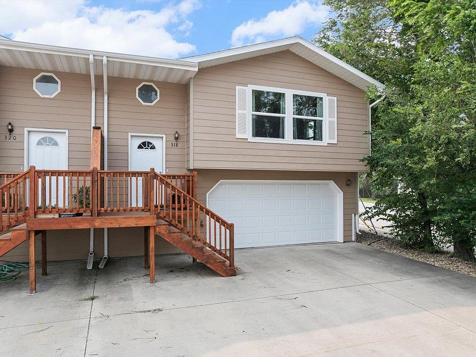 Welcome to this well-kept townhome with a functional split-level layout. Upstairs you’ll find a bright living area that flows into the kitchen and dining space, along with two comfortable bedrooms and a full bathroom. Step out onto the deck to enjoy fresh air and extra space for relaxing. The lower level offers a large bedroom, another full bath, and access to the two-car garage. With plenty of room and a practical design, this home is ready for its next chapter. Updates include new flooring, new A/C, windows, and roof in 2022, a new furnace, reverse osmosis system, no HOA and a water softener. Downstairs could even be used as a guest area!