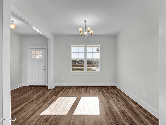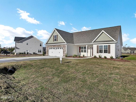 Welcome to Brick Chimney Landing, this Ann floor plan features all living on one floor with 1700 sq ft 3 bedrooms, 2 full bathrooms, covered front and back porches plus a two car garage. Inside is an open layout with a vaulted great room, formal dining room, breakfast nook, pantry and laundry room. Kitchen has stainless steel appliances, an island and bar seating area. Bedrooms are split with two bedrooms on one side sharing a full bathroom and primary suite on the back of the home with walk-in closet, dual sinks and walk-in shower. Owners will enjoy the oversized lot with water views from your backyard. Discover Brick Chimney Landing today. Future boat ramp access to the river, community pool and large home sites to choose from. Selections depend on status of build, inquire for more details. Schedule an appointment today to learn more. This home is under construction now with completion in October.