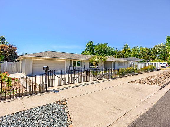 Fantastic single level home located in a great East Medford neighborhood, close to the Rogue Valley Country Club golf course. This home features 3 bedrooms, 3 bathrooms, an open floor plan, approx 1657 sq ft, spacious entryway, separate large living and family rooms, laminate flooring and window coverings. Family room has a large glass sliding door and a brick fireplace and is open to the kitchen. Living room has a large window that overlooks the front yard. Great kitchen offers appliances, eating bar, great cabinetry and window to view the backyard. Large laundry room has a sink with counter space, abundant cabinetry and great space. Huge private backyard offers a large enclosed patio and an additional covered patio, mature landscaping, pavers, and great fencing. Attached 2 car garage with a utility sink and upper & lower cabinetry. Home sits on .23 of an acre. Enjoy the large gated driveway, fenced & easy care front and back yards. Move-in ready.