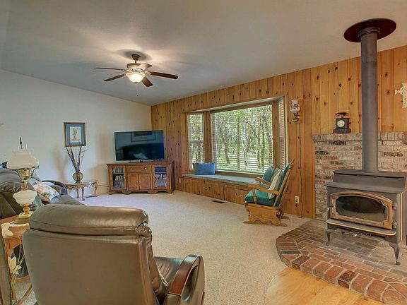 - Fireplace features: wood stove
