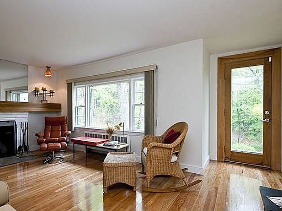 Retro cool sizzles in this Sinatra-inspired classic 60's ranch with an amazing yard in the midst of conservation land yet steps to transportation. Great flow & brilliant sunshine pour in from oversized windows and kitchen skylite. Freshly painted, gleaming floors, young roof and lower level family room or possible in-law. Oversized private yard and patio with beautiful stone BBQ for summer entertaining. This rare Boston wooded retreat will have you singing!!