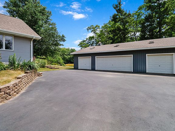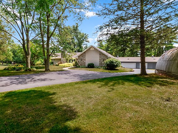 Step into your personal slice of paradise! This 4-acre estate features a fully stocked pond and is perfect for horse/animal lovers. The large pole barn has electric, reinforced concrete floors, three power garage doors (four-car parking capacity) and air compressor. The property is partially fenced and the pole barn includes a horse stall and tack room, providing the perfect set-up for horses and other livestock. There is also a quonset that provides additional storage.Inside, the split-bedroom floor plan offers privacy and functionality. The owner's suite has an attached bathroom that was recently updated and a walk-in closet/potential office. The kitchen was also recently updated and features beautiful white cabinetry, a tile backsplash, granite countertops, LG appliances, and two walk-in pantries. The kitchen appliances and the freezer in the pantry stay with the home. Enjoy the pond and wildlife views from the breakfast nook, with a formal dining room/flex room nearby!The laundry room is conveniently located on the main-level (washer and dryer stay!) Recent updates include new siding, roof, furnace, AC and new carpet throughout. The unfinished basement offers loads of potential- pool table is included.
