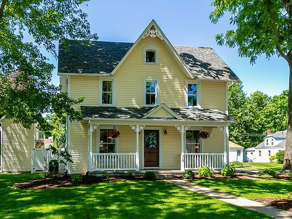 It isn't every day you find an updated 4 bedroom, 2.5 bath home, with an salt water pool and 2 car garage in Eldridge, but today is that day. Built in 1884, you will discover vintage charm with many updates throughout the home. The first thing you will notice is the gorgeous landscaping around the yard. The covered porch invites you to enter the home to the living room where you will find a tray ceiling and fireplace. The eat-in kitchen is sure to delight any budding chef with its hardwood flooring, center island with breakfast bar, and stainless appliances. You will also discover a bedroom and laundry area on the main level. Upstairs houses 3 bedrooms including the primary bedroom with a full private bath. Nestled inside the crisp white vinyl fencing, you'll find your own personal getaway. The inground pool and exterior bar is sure to become the favorite gathering place during the warmer months. The playhouse has as much potential as it does charm. Don't miss out on this opportunity.