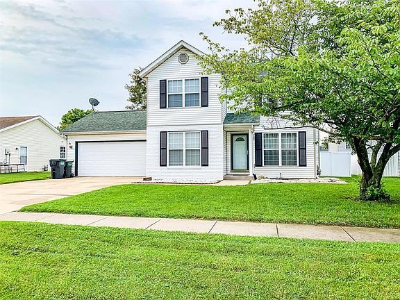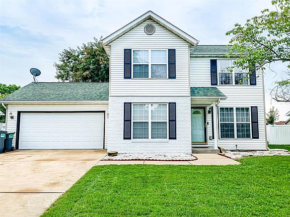 Impressive farmhouse modern style showcased in this classic two story on an oversized privacy fenced lot, just minutes from shopping, restaurants, and interstate access to St. Louis! Painted white brick and matching siding on exterior sets the perfect tone for the cool and bright updated interior! Step into the beautiful living room with modern wood look floors, flowing neutral palate, and centerpiece white brick framed fireplace flanked by long, bright windows. Open floor plan with spacious kitchen with parallel sides of white cabinetry and working countertop space, stainless gas stove, and all modern fixtures. Spacious entry dining room could also serve as main floor home office. Second floor (new carpeting) boasts updated full bath & 3 generous sized bedrooms, including master ensuite with bath. Second floor laundry! Tankless water heater, white vinyl privacy fence, awesome garage space, and much more! Easy access to SAFB. Close to parks. This home is move in ready!