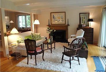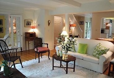Comfortable, carefree living in beautiful Lyon Farm. This charming, meticulously maintained home overlooking pretty gardens and a scenic pond is highlighted by lovely millwork, faux finishes and hardwood flooring throughout. Handsome beadboard paneling, beamed ceilings and many built-ins accentuate both the dining room and gracious living room featuring a fireplace and broad sliding glass doors opening to an expansive deck, ideal for seasonal entertaining. A family room, well-equipped kitchen, powder room and storage area complete the main floor layout. On the second floor, there are two bedrooms with en suite baths including a spacious master suite with multiple closets. The private condominium association offers the pleasures of a heated pool and an all-weather tennis court.