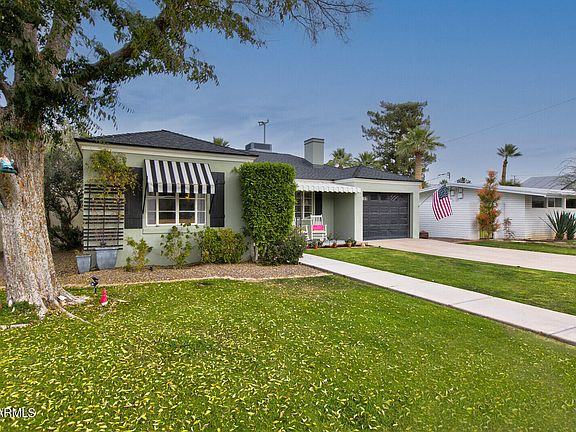 Here's your chance to own the Harry J. Rolls house in the Willo Historic District! This charming brick, period revival home is located on the coveted Palm Lane. The fantastic curb appeal and front porch welcomes you right away. Spacious interiors include a beautiful living room with fireplace, formal dining room, remodeled kitchen with breakfast nook, remodeled bathroom, architectural niches and historic charm throughout. Large pantry and laundry room. Brand new beautiful roof, updated electrical and HVAC. Attached garage - rare for historic - wonderful backyard with lots of grass and out building that could be used as an office/gym/studio. Walk to all the wonderful amenities of Midtown including Phoenix Art Museum, Heard Museum, great restaurants, bars and light rail.