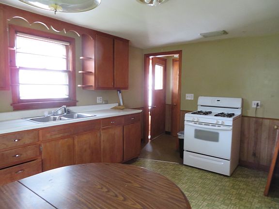 eat in kitchen with nice cabinets, Large living room, two bedrooms, corner lot, over sized garage, room for cars and work area, this is just right for that starter home of for those that want to size down. Little loving care, will make this a cute home, Real Hardwood floors full basement, great location too. Don't wait take a look