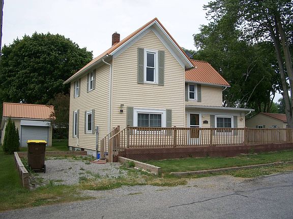 This 4 BR, 1 BA, 1,624 sq. ft. older home has plenty of updates, vinyl siding, metal roof, replacement windows, furnace, electrical, two decks, one car storage shed and three bay heated garage with black top drive on three 66' x 158' lots. Also 4 1/2 bare lots available across the road.