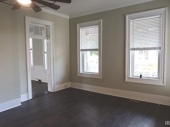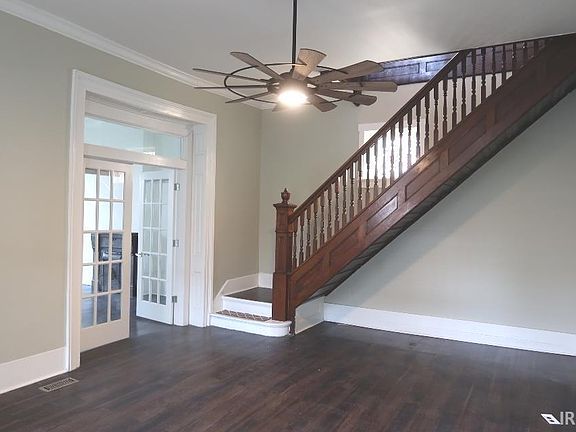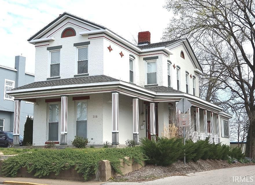 Don't miss this recently restored two-story home in downtowm Mt. Vernon. This all brick home features a beautiful covered wrap-around porch. As you enter the living room, notice the high ceiling and the beautiful staircase with stain-glass window. Just off the living room through glass French doors and glass transom is the main level bedroom with a decorative fireplace (not longer useable) and with a bath. This bedroom could also be used as a nice family room. There is another glass transom as you pass through the living room to the large dining room. The dining room opens into unique incredible kitchen. The kitchen features tile flooring, a vaulted wood ceiling, planning desk, lots of cabinets, 2 corner appliance garages, double sink, peninsula with seating area, and appliances (refrigerator, range/oven, dishwasher, disposal, fan hood) and skylights for wonderful natural lighting. Just off the kitchen when you come in from the back door is a unique back foyer also with tile flooring and with wood walls inlaid with mirrors, a large closet and cabinets. The second full bath is in this area and features tile flooring, a soaking shower, sink, and commode with cabinet above. As you ascend the beautiful staircase past the stain-glass window, you approach the second level that has the other three large bedrooms and a newly remodeled full bath. The upper hall has lovely wainscotting. The bath has a claw-foot tub, walk-in shower, sink, commode and tile flooring. All of the entry doors on this level have lovely glass transoms. One bedroom features a brick wall and a decorative fireplace (not longer usable). In the hall is a pull-down stairs case to the attic area. The cellar/basement is accessable from the outside. There is a 4+ car parking pad for the house. Other features of the home are crown molding, chair railing, gas water heater, gas furnace, central air conditioning, and electrical panel with breakers. Includes: window treatments, mirrors, kitchen appliances (range/oven, dishwasher, disposal, refrigerator, fan hood), ceiling fans. Also includes one-year Cinch Home Warranty ($513 Value). Per owner: 2024-new gutters to be installed in summer; 2021-new refrigerator, dishwasher, disposal; 2020-extensive remodeling, 60 gallon water heater. Square footage is per Assessor. All square footage and measurement are approximate and not guaranteed.