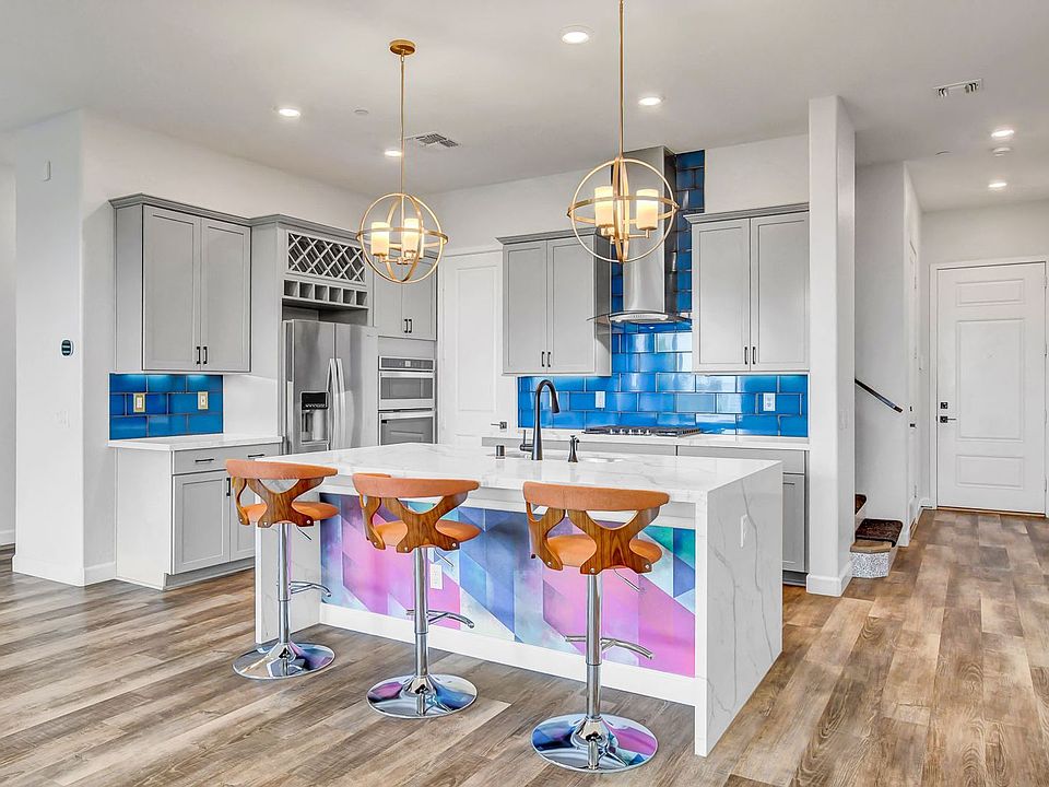 Modern pendant lightsFour bedroomStunning strip viewsUpgraded kitchenLarge pantryLarge island with seating
