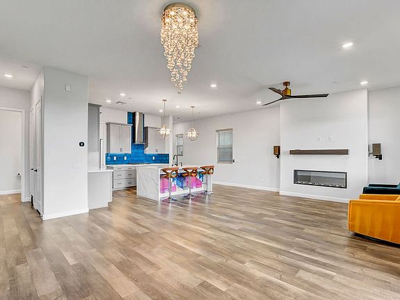 Modern four bedroom in the heart of Summerlin with stunning strip views. This unique property boasts LVP flooring throughout the downstairs. Upgraded kitchen features stunning quartz countertops with a waterfall edge, large island with seating, modern pendant lights, and a large pantry. Incredible strip views from the living room and backyard. Custom electric fireplace and mantle in the living room. Upstairs features four oversized bedrooms plus a loft. Incredible primary with a balcony and more views. Ensuite bathroom features his and hers sinks, large-shower, and a soaking tub. Low maintenance yard with lots of turf. Summerlin location near lots of walking and hiking trails, high-end shopping, and highly rated restaurants. This incredible home will not last long. Tenant places electric, water, trash, and gas in their name.