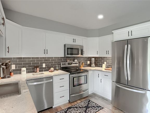 This fully renovated townhome in Neshannock Twp. overlooks the 12th hole of Castle Hills Golf Course, offers modern living with picturesque views. Featuring three spacious bedrooms and 2.5 baths, the open floor plan seamlessly connects the bright living room to a chef’s kitchen with custom cabinetry, granite countertops, and high-end stainless steel appliances. Large windows on the main floor showcase the scenic golf course and fill the space with natural light.