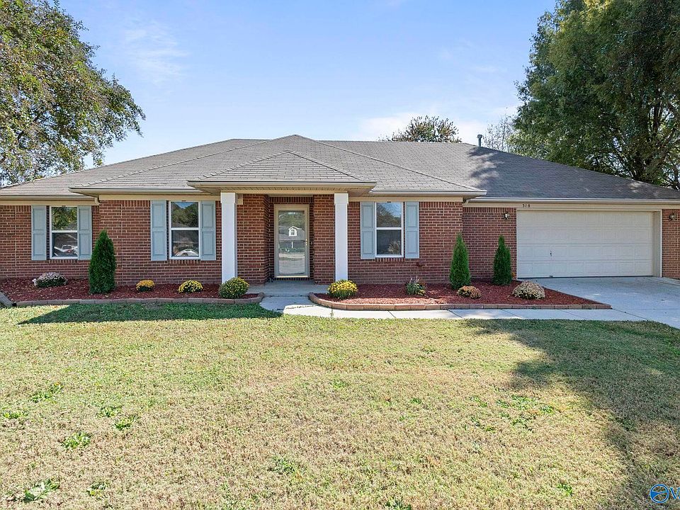 Move-in ready brick ranch on a private cul-de-sac in Harvest! This 4 bedroom, 2 bath home offers nearly 2,200 sqft of comfortable living space on a .36-acre lot with no HOA. Fresh updates include new flooring, neutral paint and updated lighting. The spacious living room features a fireplace and tray ceiling, while the kitchen boasts abundant cabinetry and a sunny breakfast area. The primary suite includes a walk-in closet, double vanity, soaking tub and separate shower. Enjoy a large backyard with plenty of space for entertaining. Conveniently located close to Sparkman HS & Harvest Square Nature Preserve, and a short drive to all that Madison/Huntsville has to offer!