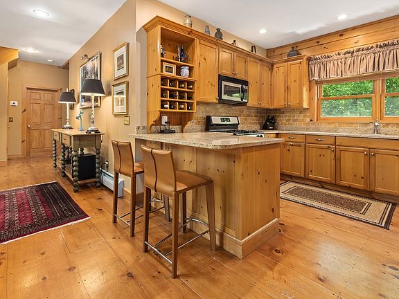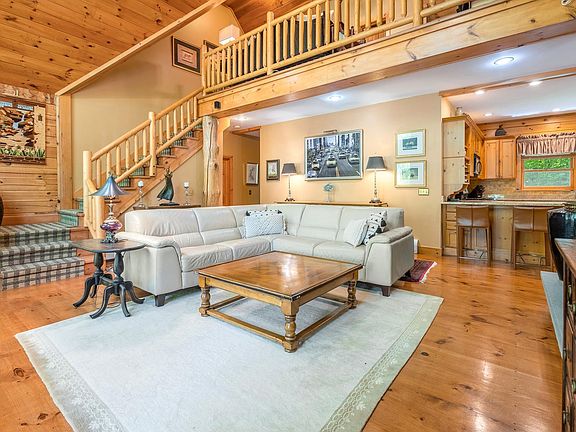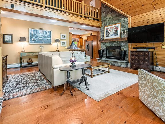 Stunning log residence with views of Stratton Mountain and access to the Stratton Sports Center, this exceptional mountain getaway is just minutes from the Stratton Sunbowl and Resort. Cathedral ceilings, duel-sided fireplace, beautiful log accents and wood floors create a warm and inviting great room that opens to kitchen, dining, a spacious three season screened porch and large deck. Plenty of space for guests with multiple guest rooms, loft and finished lower level. Upscale kitchen brings ease to après ski and weekend barbeques! An oversized 2 car garage, mudroom and foyer entrance are designed for the mountain enthusiast.Finished bonus rooms great for workout space and home office. Mature and beautiful landscaping. Convenient to Resort, summer recreation, golf and the best swimming hole around! Make the trip to see this one!