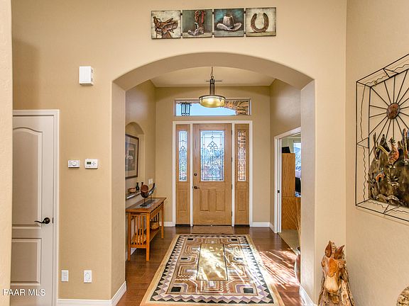 This home has the most extraordinary views in Prescott, its backs to trust land and located in the Ranch at Prescott, one of the most prestigious subdivision in Prescott. It is over 2500 sq.ft. with 3 bedrooms,3 bathrooms, a large study, oversized 3 car garage with built in cabinetry and sink, upgraded kitchen cabinetry with granite countertops, two fireplaces, central vacuum, pavers, front garden area with water feature and the list can go on and on. If your buyers are looking for single level home with stunning views, don't miss showing this home.