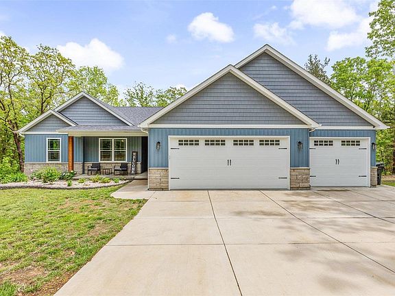 "Welcome to your dream retreat! This custom ranch, just 3 years young, sprawls over 8.76 acres of picturesque land. Crafted by Signature Homes, it boasts exquisite details throughout. A spacious 36 x 26 finished garage complements the open floor plan, featuring luxurious planked vinyl flooring. With 4 beds and 2 baths, including a stunning primary suite with vaulted ceilings and spa-like bathroom, comfort is guaranteed. The family room, adorned with a cozy gas fireplace, leads to a vast covered deck. The kitchen is a chef's delight, with a large island, granite countertops, and stainless steel appliances. A main floor laundry adds convenience. Downstairs, find endless possibilities with a bedroom/office, Safe Room, and rough-in for a full bath. Plus, a walkout offers easy access to the expansive grounds. Whether for horses or solitude, this is your oasis. Your search ends here—welcome home!"