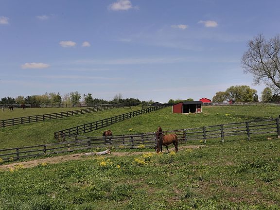 Location, location, location: neighboring some of the world's most preeminent Thoroughbred nurseries, 3180 Delong Road maintains a location at the height of convenience - and beauty. Across the road from the magnificent Overbrook Farm and directly adjoining the Juddmonte Stallion Complex, the appx. 10.8+/- acre property has an 8-stall barn, five paddocks with auto-waterers and a very practical 3BR/2BA ranch-style residence. The residence has a lovely, large family room with fireplace, sun room, 1-car attached garage and covered front porch. It is an ideal candidate for renovation, or even removal in favor of a new home. Additional immediate neighbors include: Bel-Mar Farm, the former Springhouse Farm, Taylor Made and Wimbledon Farm. Call today for a private tour. Property being sold as-is with inspections welcome!