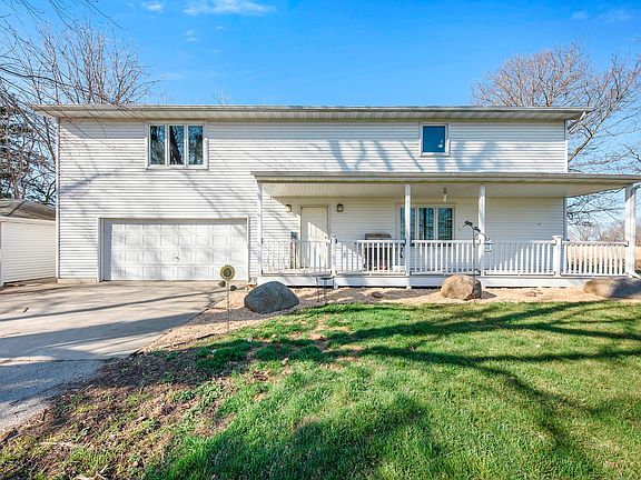 This Unique 4 acre secluded parcel is situated approximately 500 feet from the road and in the rear of a wooded lot. The welcoming front porch is the perfect spot to enjoy a peaceful evening. This home is over 2000 square ft. with an open concept and a sunroom on the main level with the attached 2 car garage. The second level hosts a large master bedroom along with 2 other bedrooms and 2 bathrooms. Tons of walnut, cherry, mulberry trees. Do you want extra buildings? There is also an extra large approx. 21x20 detached garage and approx. 15x10 storage shed and a little "outhouse". New furnace/ac, water heater, ejector pump, water softener, water filtration system, and dishwasher ALL in 2018!