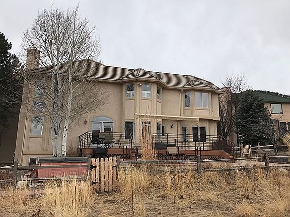 This solidly built, tastefully updated, and meticulously maintained home sits on .46 acres with mature trees and captivating mountain and city views. The main level features 2 living areas with gas fireplaces, a large updated kitchen, office, breakfast nook, formal dining room, and convenient access to the patio outdoor dining area. A large mud room/laundry room accesses the oversized 3-car garage with new clear-coat flooring. Upstairs, the master bedroom features brand new plush carpet and remote-controlled drapes opening to unobstructed views. New hardwood floors upstairs lead to 3 additional large bedrooms and 2 bathrooms. The finished basement has 1 bedroom, a full bath, and a large open living area with billiard table (included in sale). Huge unfinished storage area has built-in shelving. Outside, the professionally landscaped yard includes an expansive multi-level composite deck, gas fire pit and hot tub, all with dramatic views of open space and downtown. The backyard gate provides direct access to Bear Creek Regional Park for hiking and biking, or venture further to the Bear Creek Nature Center, Red Rock Canyon Open Space, and Section 16 trails. This home truly combines the best of all worlds.