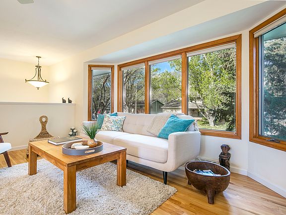 Fantastic location! Enjoy close-in mountain views from most rooms of this immaculate & remodeled light-filled home. Shows beautifully with large windows, hardwoods & family room gas fireplace. Corian counters in kitchen, travertine tile in baths. Mountain views from tree-lined corner lot w/shed & treehouse. Trex-like deck & expansive flagstoned patio are perfect for relaxing, alfresco dining/entertaining. Within walking distance to all schools, rec.center, park, trails & open space.