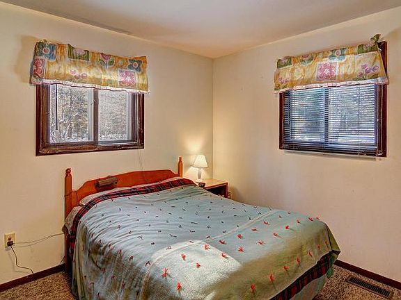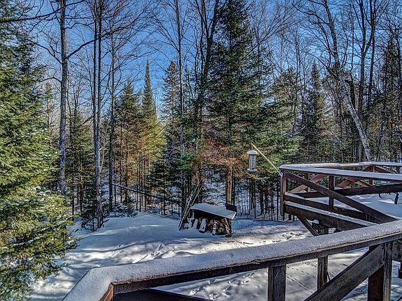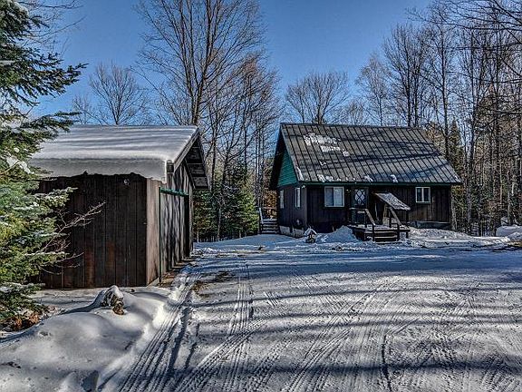 Get away to your Classic Affordable Chalet in the woods, Conover, Phelps, Eagle River and Land O Lakes all out your front door minutes away. 3 bedroom cozy cabin, with large garage with metal roof and attached shed , hidden dog kennel, New gravel Circle Driveway, fire pit, big yard (not much mowing) Almost 5 acres for great privacy. Inside is a nice kitchen and living room and bedroom, full bath main floor, easy steps to loft bedroom for a second bedroom, set up for an area for a free standing fireplace or gas fireplace, pretty stone surround and out the patio door with entire back side deck over looking a nice pond and big woods. Close to many lakes, snowmobile out your front door. Lower level walk out has a nice full bath cedar walls, and utility room with laundry and sink. Semi finished area with closet for storage or over flow sleeping. Super nice getaway or year round spot for your next venture.