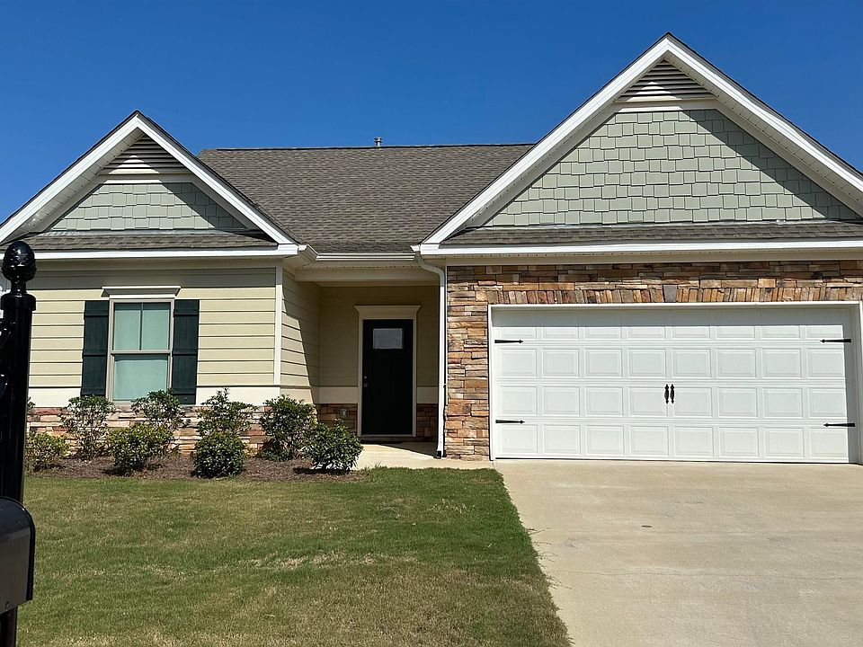 This home offers convenient access to local amenities and neighborhood offers views of beautiful Lake Logan Martin. The three-bedroom home in The Horizons community has a nice spacious entryway that leads to the open family/dining area. The kitchen is space efficient with granite countertops. The Master bedroom is roomy with a walk in closet and nice appointed bathroom with a large tile shower. The additional two-bedrooms & second bathroom located off of the entryway offers privacy in this charming Lathem ranch plan. A two car garage off of the kitchen and open patio in the back yard competes this nice functional house ready for you to call home.