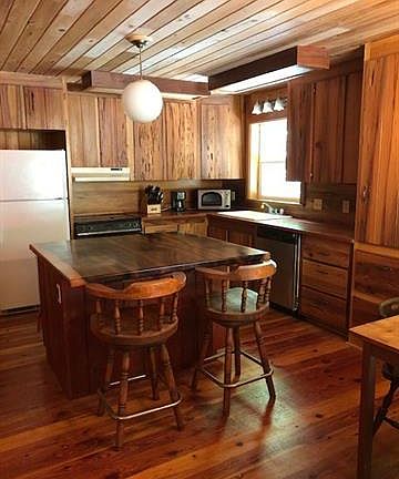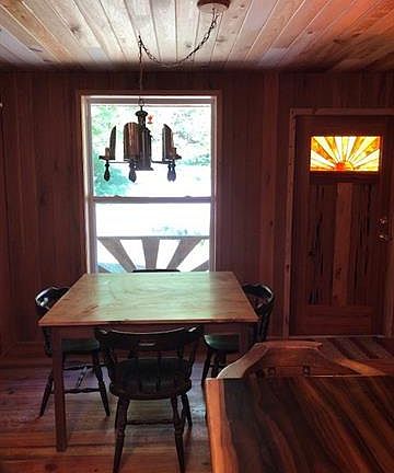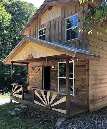 Custom woodwork from kitchen cabinets and island to bedroom built-ins to stain glass front door to the cheery exterior sunrise theme. One owner/craftsman/builder. There is a 12 x 16 workshop with 8' covered porch and electric. A front porch for rockers, a back screened porch and a deck above a huge boulder. Verizon cell service is usually 2-4 bars. Located at the end of a dead end road...only four neighbors past this house. Deeded rights to a shared spring. A national lender stated it may be possible for conventional or government loan program depending on whether shared springs are normal for the area. Permitted septic system. Permitted electric upgrade in 2018 to 200 amp service, however main house never permitted. See additional documents for specs on home construction, list of items for possible purchase. Seller requires two weeks after closing to remove contents of shop and to remove stacked, cut wood on property.