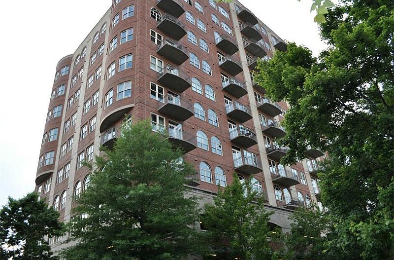 Breathtaking views of Buckhead. This large corner unit loft has exposed brick walls and gorgeous arched windows! Expansive light filled interiors w/dramatic 14' ceiling and a stunning open floorplan. Large terrace for entertaining wraps the 2 sides of this gorgeous loft. Exposed ducts, hardwood floors, and granite and stainless steel make this kitchen sparkle. Upgrades throughout. Amenities include a pool, rooftop terrace, clubhouse with catering kitchen, exercise room, and gated secure parking.