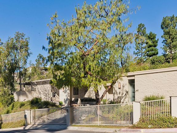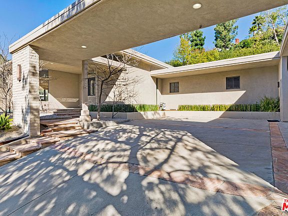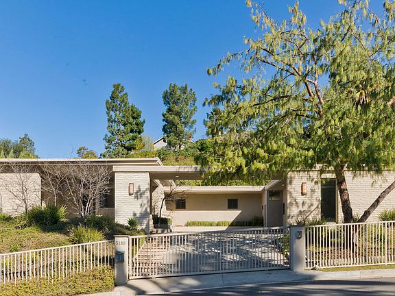 Sophisticated one story Mid-Century Modern sited perfectly on over one half acre in the exclusive Fryman Canyon Estates. Gated and private this quiet retreat is an oasis yet close to the westside. Features include dramatic high ceilings, walls of glass, 3 fireplaces and a flexible, spacious floor plan. The elegant architectural home includes a light filled living room, formal dining room, family room and huge breakfast room open to the gourmet kitchen with top of the line appliances. There are 5 bedrooms, 5 baths and powder room. The Master Suite features a seating area with fireplace, 2 large walk-in closets, spa-like bath and private gym. Mature trees and landscape highlight the expansive, flat, grassy yard, large pool and spa. The pool-side cabana and built-in barbecue complete the picture of this most gracious home.