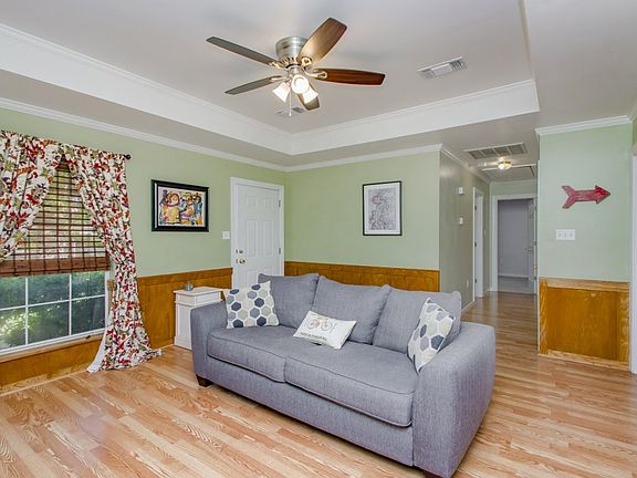 Great starter home - In the top-ranked Zachary School district!! Perfect sized living room with wood laminate flooring and trey ceilings. Kitchen opens up to dining area all with brick paver floors. Kitchen has good light and features dishwasher, electric range / oven and a built in microwave. The kitchen and Dining overlook the back porch and large, fenced yard. The master suite has soft, quiet carpet, a private bath with double vanity and garden tub. Two nice sized bedrooms with additional bathroom off the hall. One- car carport with additional parking. The yard includes mature landscaping and lots of room to play. Located in Rural Development loan area.Move-in ready condition, great school district, this house won't last long!!