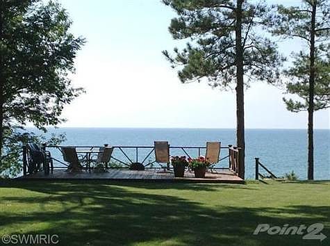 You will love everything about this attractive, spotless and meticulously maintained one story home located right on the bluff overlooking Lake Michigan. Million dollar lake view from home and 16x23 bluff deck! 3-4 bedrooms with guest wing on one end and master suite with private bath and walk in closet on opposite end. Open floor plan with large rooms, living room gas fireplace, great kitchen, main floor laundry room, solid oak panel interior doors and a lovely 3 season room lakeside not included in square footage. Full basement has family room partially finished with bead board wainscoting, drywall and electric. Easy care vinyl shake exterior with asphalt circle drive. Garage finished and insulated. Hi-efficiency furnace, central air and iron filtration system. Beach frontage is owned by PCA. Owners and neighbors have been able to use frontage since 1974. Nothing is in writing. 55 steps go to beach of which about 40% are on PCA property. Spectacular!