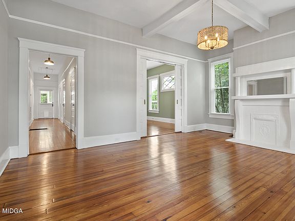 Check out this historic gem in the Ridge/ Ingleside Area! Meticulously restored, you'll love all the captivating features and character such as working original pocket doors, 4 original decorative fireplaces, designer hardware, beautifully refinished heart pine flooring, and 11' ceilings throughout. The kitchen boasts all-new cabinetry with soft close doors/drawers, granite tops and granite slab backsplash, along with a full set of new stainless steel appliances. All-new updated lighting, 2' plantation blinds & fresh paint throughout. With a flexible floor plan, the formal dining room can easily be transformed into a 4th bedroom. Enjoy peace of mind with low-maintenance siding, a newer roof, and A/C installed within the past 5 years, along with updated electrical, newer insulated windows, and extra blown insulation in the attic. Expansive 10x34 front porch (of course with haint blue ceiling!) is a great place to relax, and the screened porch and new rear deck overlooks a privacy-fenced rear yard. Additionally, a 16x24 wired and insulated workshop provides ample space for hobbies. Located just 2 blocks from Henry Burns Park, this home offers the perfect blend of historic charm and modern comforts, all in a wonderful location!