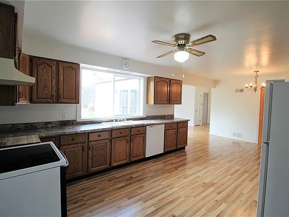 Welcome to this home for all seasons! This charming remodeled ranch offers so much space with three bedrooms and two full baths. All you have to do is move in! Come on in from the front porch to the cozy living room which has wood floors underneath the carpet and a huge window to let all that natural light shine through. The living room is open to the eat in kitchen and the kitchen which flows to the open great room. The large, spacious kitchen has a new fridge and stove, abundant of cabinets and counters, a large window over the sink to again offer sensational sunlight through. The great room has built in shelves, cabinets and a slider to the picture perfect backyard which has a deck, large outbuilding, and yards of yard! The three bedrooms with plenty of closet space and two full bathrooms finish the main floor. The finished lower level offers so much room for entertaining etc. with a gas fireplace, built in shelves, recessed lighting, remodeled laundry room, new windows, and waterproofed in 2019. There is an attached two car garage which is attached to the breezeway of the home. So many updates include new 200 AMP service installed 2015, high efficiency gas furnace with A/C 2015. Hot water tank 2019, new windows 2016, patio door 2019. Freshly painted through out. New locks on exterior doors. This property is only for the home at this price.