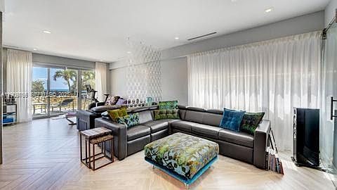 PRIVATE BEACH FRONT HOME (LITERALLY)! RARE TO MARKET, NEXT TO MANSIONS OF GOLDEN BEACH. Your FIRST FLOOR backyard (corner of luxury building) lanai offering the best of both worlds. Opening directly to the spacious pool deck, Ocean and sand—a 40 yard walk straight into the water. No elevator required, equalling no waiting. Best located garaged parking via short walk to apt. Full renovated OPEN KITCHEN AND COMMON AREAS, premium appliances, BIG ISLAND, premier quartz counters, Italian porcelain herringbone floors, recessed lighting, solid wood doors, large hurricane windows facing ocean. Two beautiful, unique glass tiled, professionally influenced spa-style shower baths. Sonos sound system in every room, including Master Bath. 2nd bdrm/office with ocean view via large glass sliding doors.