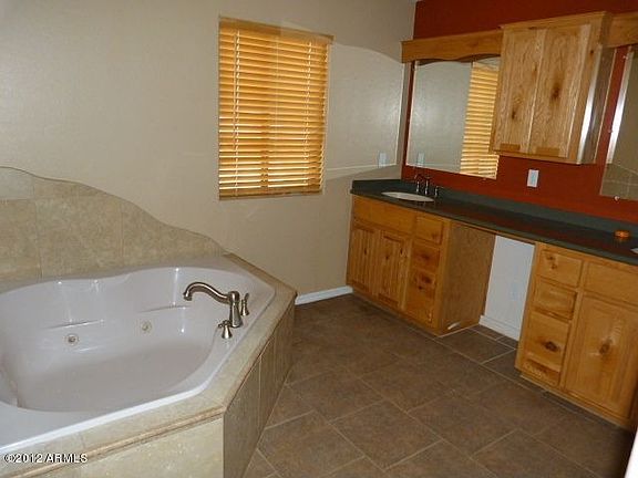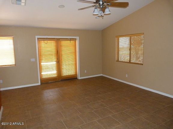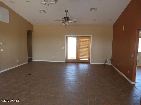 Over 2 acres with fantastic mountain and city lights views, across from BLM vacant land. Huge detached garage/warehouse with 1/2 bath. All tile flooring throughout set in a brick pattern. Vaulted ceilings, wired for speakers. Master suite has a jetted tub, separate shower, and dual sinks. Wood blinds throughout.