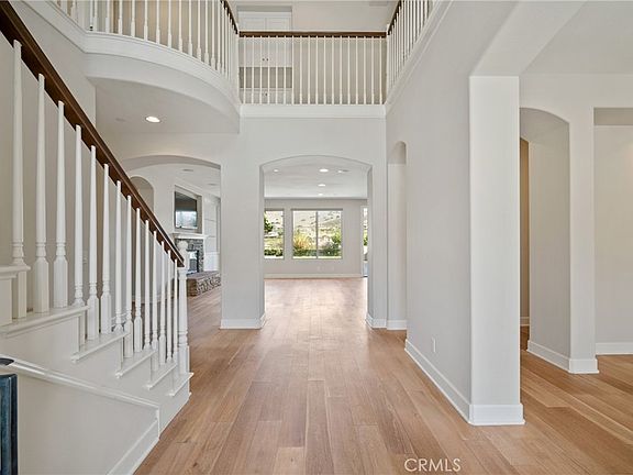 Absolute STUNNER in the prestigious gated community of Rancho San Juan! This gorgeous Mediterranean inspired estate, situated at the end of a cul-de-sac boasts a modern lifestyle floor plan on a large, view lot with two separate garages. This light and bright home with authentic wide plank hardwood floors create a dreamy Southern California ambiance. Coastal luxury living complete with a true chef's kitchen, spacious great room with wet bar and formal dining room are an entertainer's dream. Gorgeous kitchen features commercial range, stainless appliances, granite counters, center island with pendant lighting and walk in pantry. Main floor media/theater room with custom cinema and an office/den alongside a bedroom with full en suite bathroom. The backyard offers a true resort lifestyle. Indoor/outdoor living from the covered patio with fireplace, built-in BBQ and warm inviting gathering area all opening to the custom private pool & spa. The upper level extensive primary suite has lovely views, opens to a designer bathroom with soaking tub, walk-in shower and double walk-in closets. A generous loft area with a full bath, two additional en suite bedrooms and oversized laundry room complete the upper level. Casita with french doors opening to the pool area includes full bath, walk-in closet, wet bar and mini fridge making it the perfect guest suite, game room or gym. New carpet and paint. Solar, tankless hot water, EV charger and garage workshop. With close hiking trails, community basketball courts, tennis courts and horse stables, this true luxury oasis is one you don't want to miss! Welcome Home!