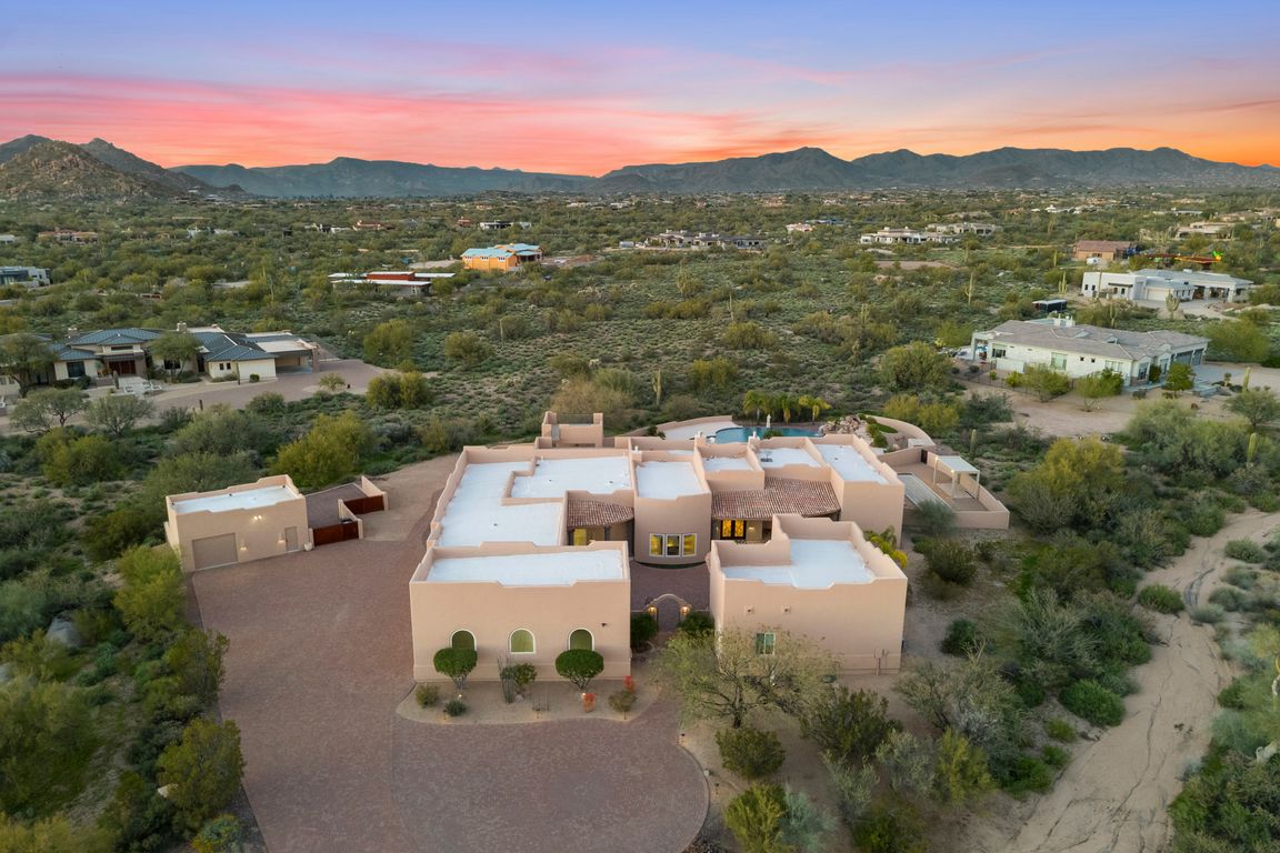 Priced Over $100K Below Recent Appraised Value - Experience Elevated Desert Living in this Custom Southwestern Estate set on nearly 3 Private acres in a Premier North Scottsdale setting, with stunning Mountain & Sunset Views. The 4,859 sq ft main residence is complemented by a 983 sq ft detached Casita, ideal ...