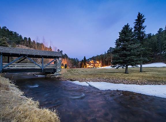 One of the most beautiful settings in the Colorado mountains! Grand mountain estate located on historic Upper Bear Creek includes creek frontage of over 1000 ft on 12.4 acres. This property features a beautiful custom home of over 8000 sq ft and spectacular views of Mt Evans and the valley, beautiful alder floors, a gourmet kitchen, spectacular great room with built in bar and huge rock fireplace and rich custom wood built ins, a wonderful master suite occupying the top floor including a 6 pc. bath and workout room or study and private deck with jaw dropping views,a separate garage or workshop over 1200 sq ft, water rights, 3 bedrooms on lower walkout level with en-suite baths, a custom rock pond that pulls from the creek, 5 fireplaces, adjacent to Denver parks and truly a one-of-a kind place!