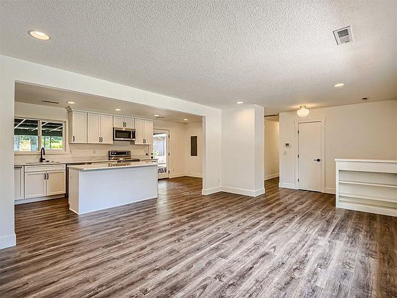 endless options. The living room impresses with a beautiful woodburning fireplace. Large remodeled kitchen, complete with an island,
