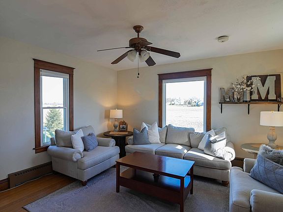 PERFECT FARMETTE IN A GREAT AREA ON 5 ACRES! Zoned Ag This 4 BR 2BA w/plenty of room to raise your family and have a blast doing it! Kitchen w/Island, HW Flrs, All SS Appl 3 Years New! Huge Din Rm w/Crown Molding! Liv Rm with more Original Wood! Absolutely Gorgeous Woodwork has been very well preserved with Original Doors & Knobs, plus All Ceilings are 9 Feet Plus!! Main Flr BR w/Big Closet and Full Bath! Side Mud/Lndry Rm is the Perfect Location! Upstairs Features MBR w/Vaulted Ceiling, Brand New Carpet, Fresh Paint, and Big Bay Window to Enjoy the Gorgeous Views! Full Bath w/Jetted Tub. BRs 3 & 4 Spacious w/Big Closets!! Basement w/W-Out Cellar. Perennials Abound, Berries, Several Out Buildings for All Sorts of Animals, plus Pasture!