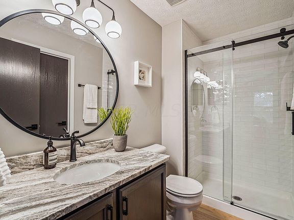 Soaring ceilings in the great room and owner's suite. Updates include-Hardwood flooring, new carpeting, the kitchen has granite counter tops & back splash, stainless appliances, new garbage disposal, sink, faucet & hardware. Both bathrooms have fresh newly tiled showers, new shower heads/faucets, granite counters, new sinks, mirrors, hardware. All new lighting, fans, door and cabinet hardware, freshly painted walls, doors and trim. Finished basement. HVAC-2015, Tankless Hot Water-2020, Radon Mitigation system in place. Freshly landscaped and newly paved driveway! Hilliard Schools! Subdivision backs to the 220 Acre Quarry Trails Metro Park-features waterfall, climbing wall, bike/hiking trails, sledding hill, zip line floating boardwalk & dog park. Broker/Owner