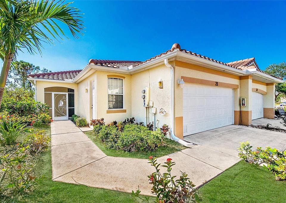 This charming Fully Furnished /Turnkey Villa is located in the heart of the Marina area of Burnt Store Marina, where there’s never a shortage of community activities! Just steps from your door is the inviting Resort Pool & Spa or walk over to the marina basin and enjoy the sunset or watch the Manatees and Porpoises play while you enjoy dinner and a cocktail at Cass Cay waterfront restaurant or grab a sandwich at the Trading Post Ship Store. Unlike other neighborhoods in the Marina, Unique only to "The Resort" is that the Pool & Spa and a really nice Fitness Center is included in their monthly condo fees. Tasteful decorated with Agreeable Gray walls and white trim this Villa's awesome open floor plan boasts volume ceilings & attractive tile floors throughout the main living area and Enclosed Lanai. The bright kitchen features a breakfast bar with a dining area adjacent to kitchen. The newly carpeted split bedrooms allow some privacy for you & your guests. You’re sure to enjoy the very private backyard area from your fully enclosed lanai. The oversized garage will accommodate car plus golf cart or even a small flats boat. The water heater is two years old and the refrigerator and “whisper quiet” Bosch dishwasher is only a year old. The gated community of Burnt Store Marina plays host to the largest marina in SW Florida! Enjoy world class fishing & spectacular boating from this 525 slip full service marina that offers direct deep water access to the Gulf of Mexico along with inside & outside rack storage options. Get out of the cold or stay year round, this place has it all.