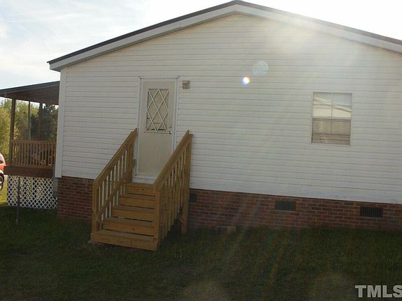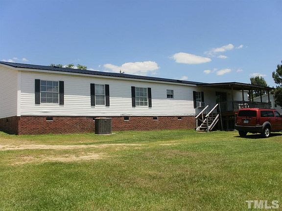 Manufactured doublewide 28 X 80. 4 bedrooms with an exercise room that could be a 5th bedroom. New flooring & new paint throughout. Split floor plan with open kit, living, dining area. Permanent brick foundation. Located approximately 10 miles south of Lillington. Convenient commute to Fayetteville/Ft.Bragg area. New Heat&Air installed in Aug,16. New stainless steel appliances convey along with 2 wall mounted flat screen TVs. New treated wood steps and rails at side door and deck. Exercise equip conveys