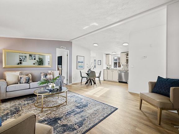 Highly desired 55+ Community on the Boise Bench! Just minutes from Downtown Boise, Ann Morrison Park, Train Depot, Coffee Shops & Restaurants. Completely remodeled with designer touches! Open kitchen design with quartz countertops & new range, microwave & dishwasher. Luxury vinyl plank flooring throughout. New exterior & interior paint. Newer vinyl windows. Roof is less than 3 years old. Modern built in electric fireplace. LED Lighting. Custom tile in bathroom & kitchen. Owner financing available. Monthly lot rent is $725/month and includes water, sewer and garbage.
