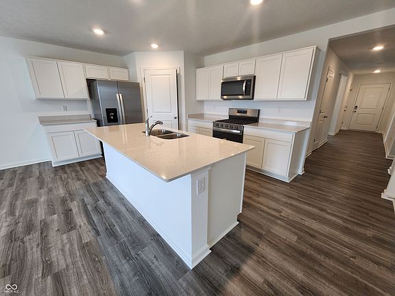 New Quick Move-In in Homestead! Introducing the Chatham, a stunning ranch-style home nestled in the picturesque town of Monrovia, Indiana! This beautifully designed plan offers 4 bedrooms and 2 baths in a spacious, single-level layout that maximizes open living spaces. The main living area features easy-to-maintain solid surface flooring throughout, creating a clean and modern aesthetic. The kitchen is a true standout, equipped with elegant white cabinetry, a massive walk-in pantry, and sleek stainless-steel appliances. With quartz countertops throughout, the kitchen is perfect for both cooking and entertaining. The large island provides ample seating, making it easy to host friends and family. Three generously sized bedrooms are located at the front of the home, with convenient access to the hall bathroom and laundry room. The primary bedroom, located at the back of the home for added privacy, includes a spacious walk-in closet and a luxurious en-suite bath. The outdoor patio offers an ideal space to unwind or entertain, providing a peaceful retreat in your own backyard. The Chatham also includes America's Smart Home Technology, which enhances convenience and security with features like a smart video doorbell, smart Honeywell thermostat, Amazon Echo Pop, smart door lock, Deako smart light package, and more, ensuring your home is connected and efficient. Homestead offers a serene country-like setting with all daily conveniences and major roads nearby. This community is set apart from all others with its family-friendly pool, park, playground, clubhouse and trails.