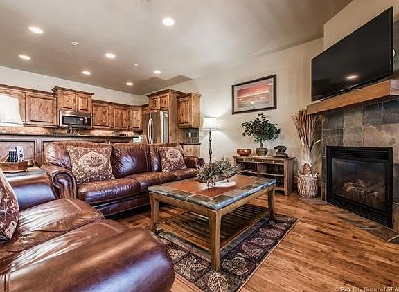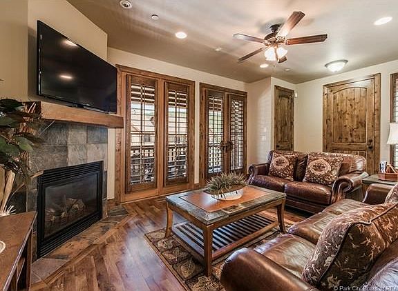 This beautiful uphill floor plan has it all! Four bedrooms, including potential for a main floor master, three and a half baths, bonus media room, over sized two car garage, gas fireplace, central air, and lovely patio. Meticulously designed in cooperation with the developer, every detail within garnered special attention. Hickory floors and complimentary cabinetry, copper kitchen sink, upgraded light fixtures, pre-wiring for sound throughout, and custom shutters on every window. Over 3,000 square feet make this townhome ideal for families and guests or as a rental property with room for extra heads in beds. Offered fully furnished and turnkey.