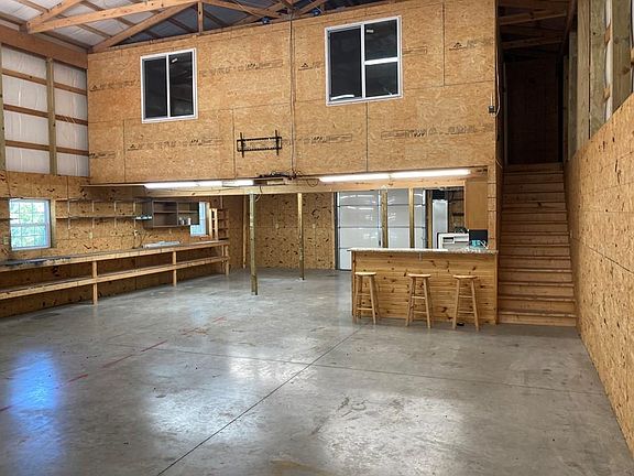 NICE shop/barn/ boat shed/ living quarters all in one, complete metal building.. This 30X 50 metal shop is fully insulated. Sports a large door 12' x 14'. Large work bench, Shop is climate controlled with HVAC. A full kitchen with appliances that stay, granite countertops. A sliding door to the rear concrete pad for cooking and grilling in the shade. Large office/ living quarters upstairs in the 20' x 30' finished loft. Loft features a bathroom and a mini split just for the loft for heat and cool. This building has all kinds of potential.