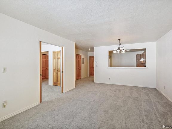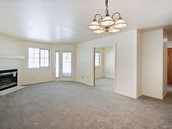 Great main level condo in the sought after 55 and over community at Rocky Mountain Village in the beautiful town of Evergreen. Live in this picturesque setting within walking distance of the grocery store, restaurants, bank, fitness center, hardware store and more! Not to mention the nearby hiking and biking trails! Access this condo from inside the building or from its own private ground level patio. This home has an open floor plan with new carpet throughout and new plank kitchen flooring. The home has a gas fireplace with ample windows bearing views of the rocky mountain landscape where you can view the deer and elk from your living room.