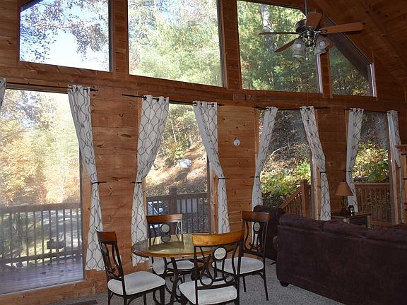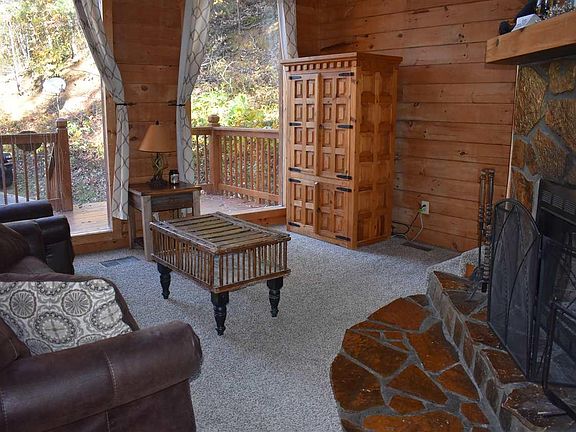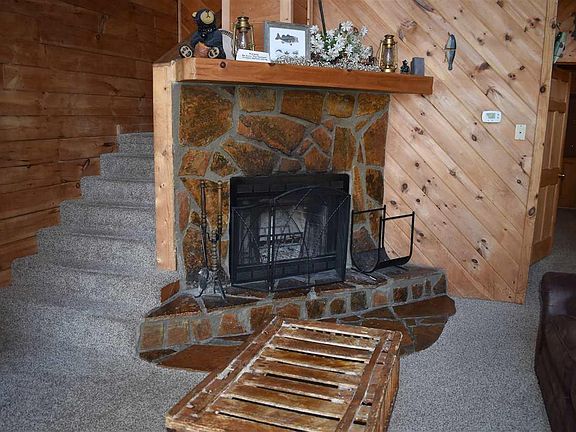 2BR/2BA Log Cabin located in Shagbark, a gated community. Nice floorplan with lots of windows. Kitchen has stone flooring and unique stone countertop. Wood burning fireplace. Comes fully furnished. Large master bedroom on main level with whirlpool tub. Huge loft with 2nd BR and game area as well as another large bathroom. Large decks to enjoy the outdoors in a very peaceful serene setting. Close to area attractions and shopping.